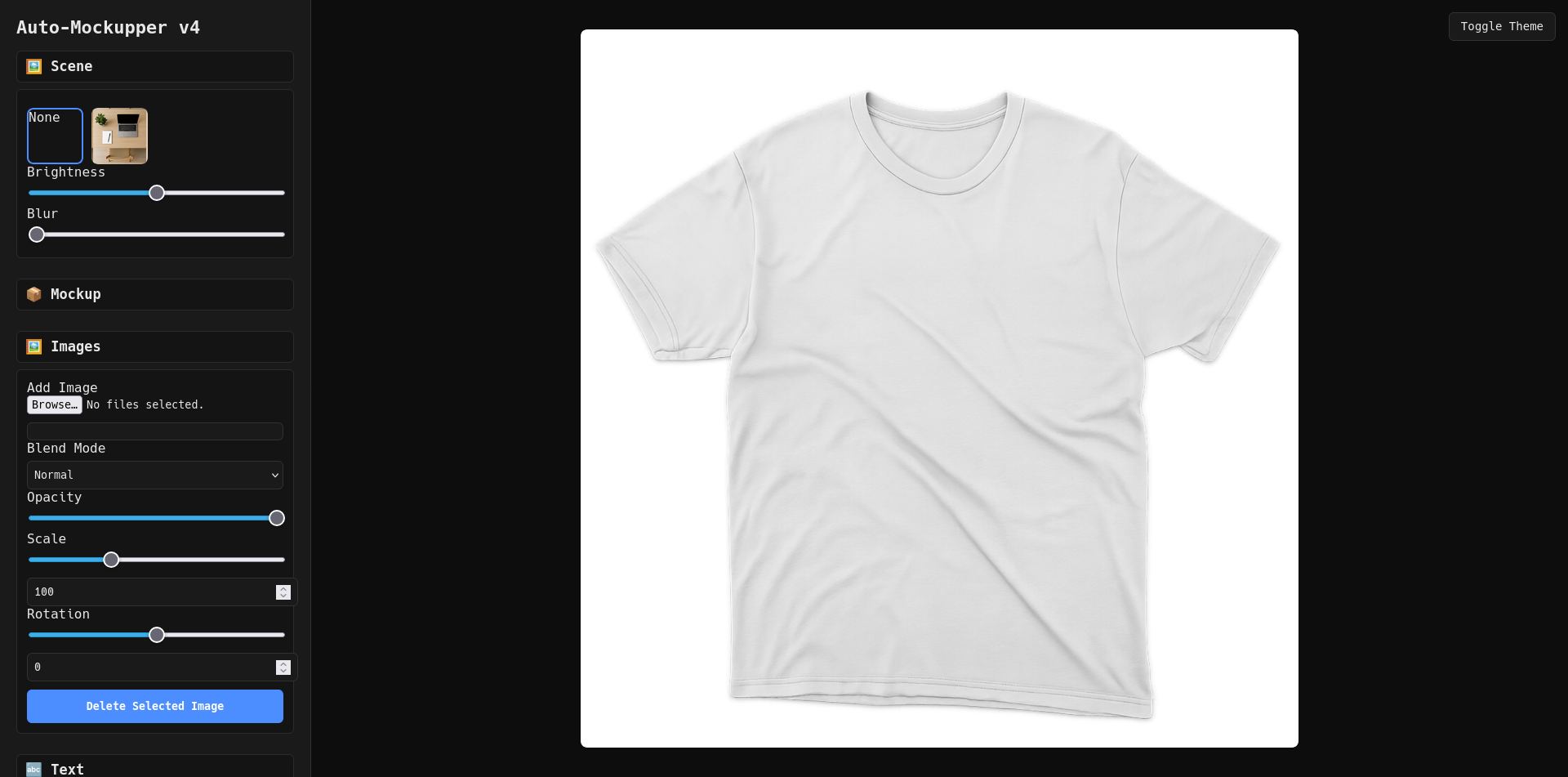 Auto-Mockupper — A minimalist mockup studio that feels native. Layer artwork, scenes, text, and effects directly in your browser. Realistic renders, instant exports, and nothing stored. Quiet, powerful, precise.