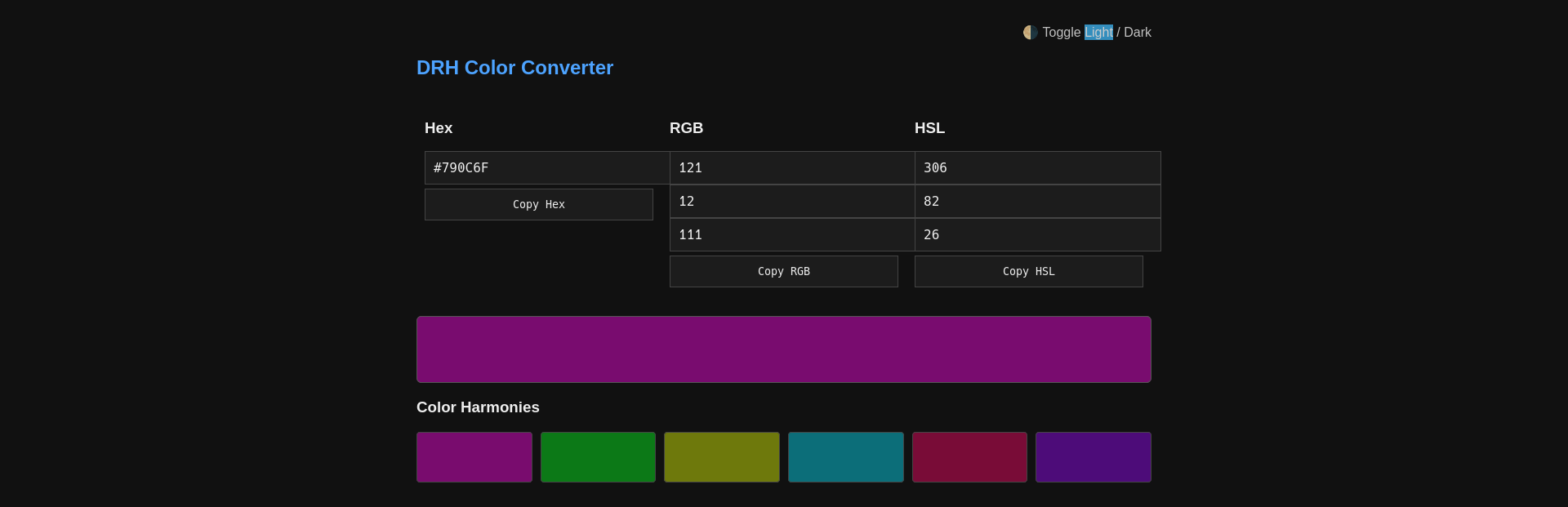Convert Hex, RGB, and HSL values instantly with live previews, harmony generation, and zero data retention.