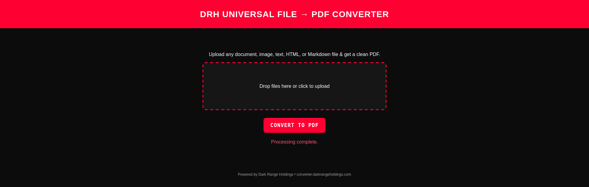 PDF Converter — A clean, instant, privacy-safe file-to-PDF converter powered by a hardened processing stack.